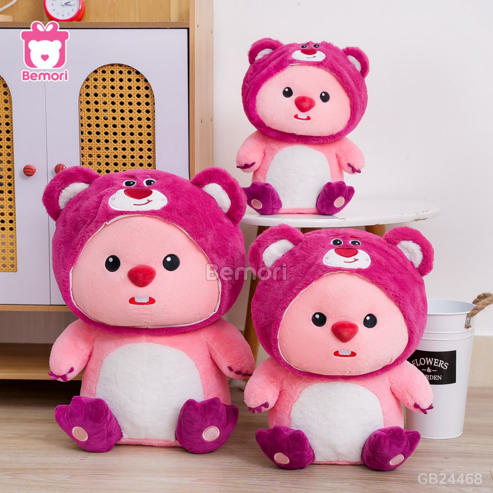 - Thiết kế cosplay Lotso: Gấu hải ly Loopy mặc bộ đồ màu hồng đặc trưng của Lotso, với biểu cảm đáng yêu và lông xoắn mềm mịn.