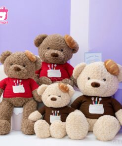 - Mẫu mã: Teddy mặc áo len, áo nhung tim, áo Baymax, hoặc gấu Angel ngực tim “I Love You”.